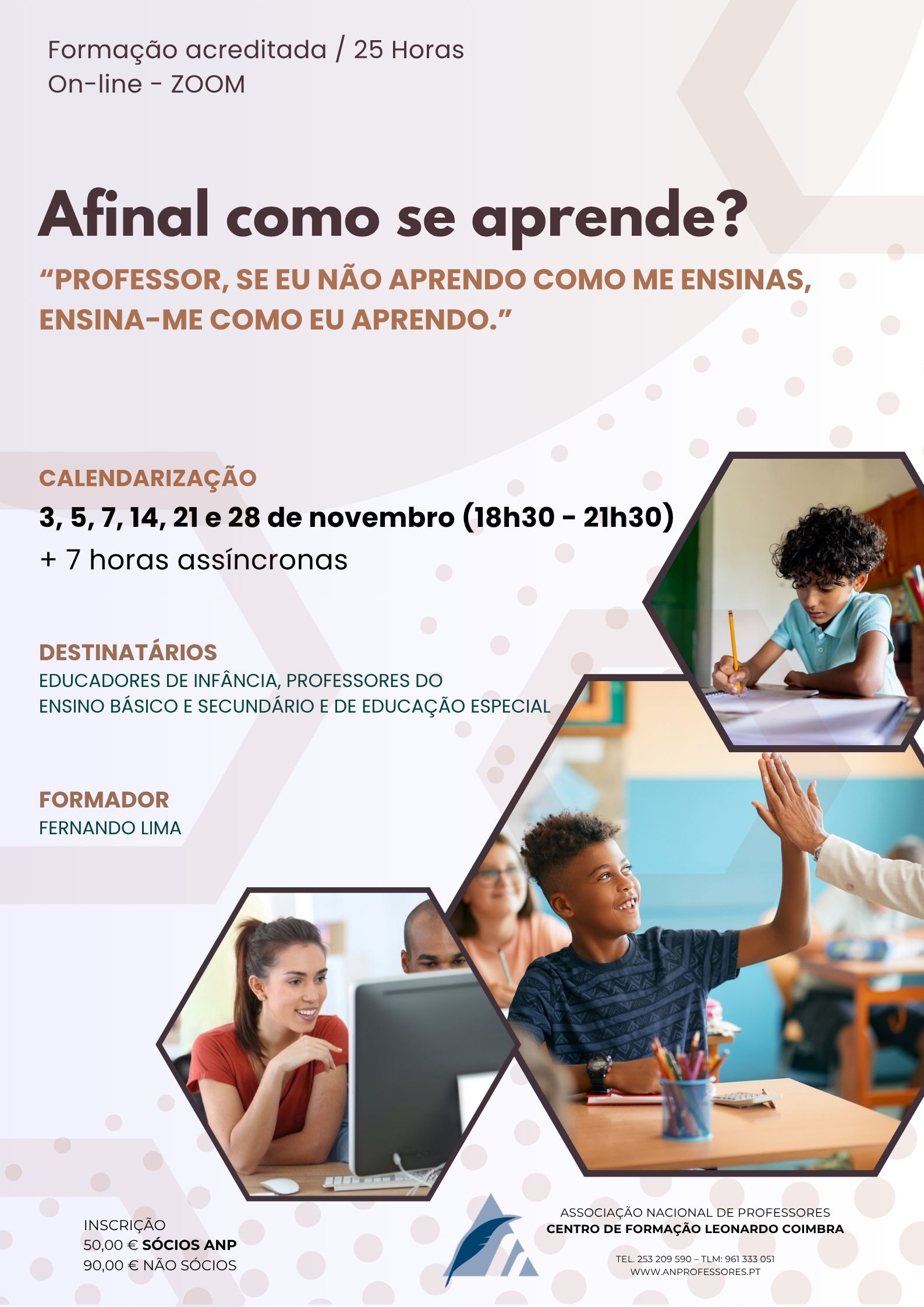 O Centro de Formação Leonardo Coimbra da Associação Nacional de Professores, vai promover online, na plataforma digital ZOOM, as seguintes ações de formação de curta duração.