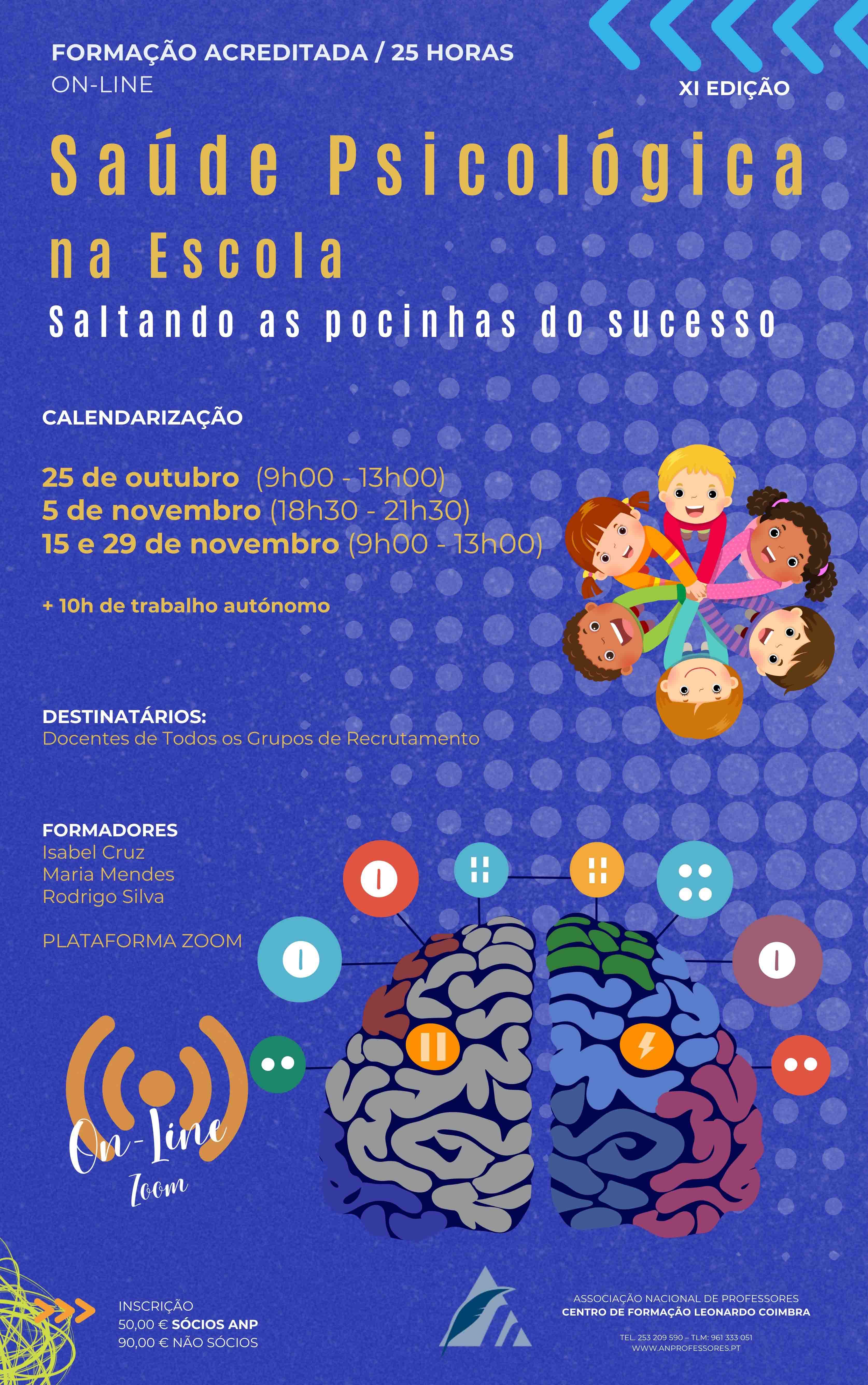 O Centro de Formação Leonardo Coimbra da Associação Nacional de Professores irá realizar a ação de formação “Saúde Psicológica na Escola – saltando as pocinhas do sucesso” - XI Edição.